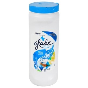 Glade carpet room refreshers contain a formula that first eliminates deep down odors and then freshens your home with a pleasant glade fragrance.